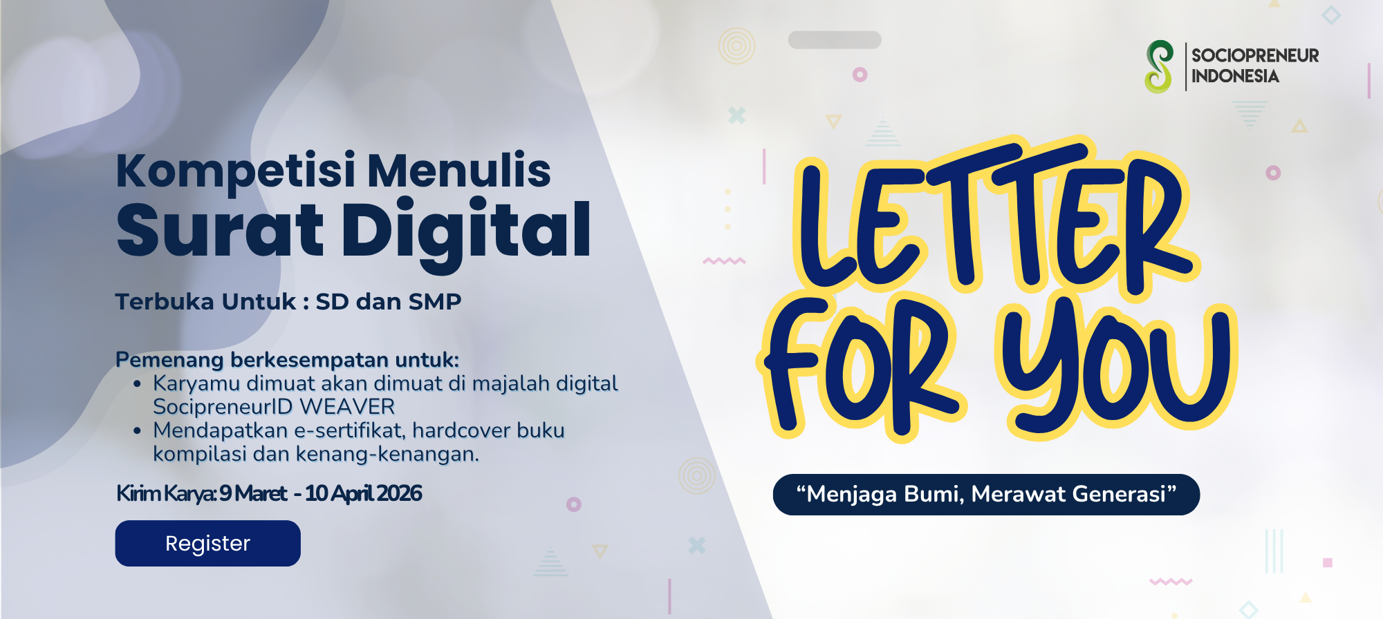 In Sociopreneur Indonesia, we believe that ‘A small act of kindness will create a ripple effect.’ It happens because some people act and inspire others to do the same. This challenge invites the young to create their own history of a ripple effect that will make life better for many.